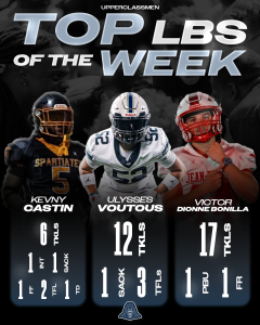 Kevny Castin – Calixa-Lavallée | Secondaire 5 | 6 plaquages | 2 TFL | 1 Sack | 1 INT | 1 Forced Fumble | 1 Touchdown